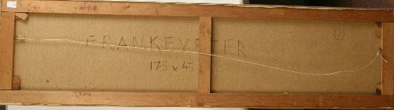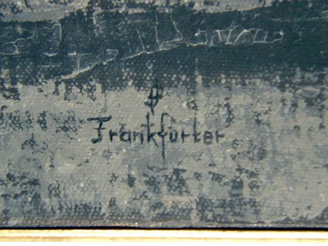 Signed verso Frankfurter (Jack Frankfurter, Austrian-American, b. 1929). Frankfurter was educated at Columbia University, pursuing a number of careers before determining, in the early 60`s, that painting was his true calling. He emigrated to Rome, was almost instantly successful, and has exhibited at the National Academy of Design, the Whitney Museum, and the Allied Artists of America. His work is included in major museum collections in the U.S. and Italy, as well as the Malcolm Forbes Collection. 18"h x 69"l