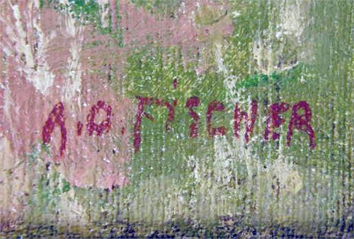 19th century. Signed l.r.c. A.O. Fischer (possibly August Fischer, German, 1854-1921). On the original stretchers. Sight size 17 3/4"h x 22 1/2"w