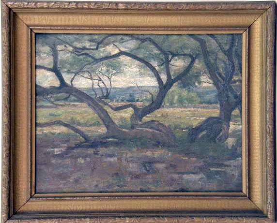 Laid down on board, unsigned. 10"h x 13"w Tear.