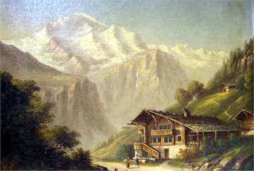 AN OIL ON CANVAS OF AN AUSTRIAN VILLAGE; Signed LL A. Stubly