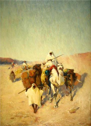 AN OIL ON CANVAS OF ARABIAN MEN ON CAMELBACK; 17 1/2"h x 11 1/2"w
