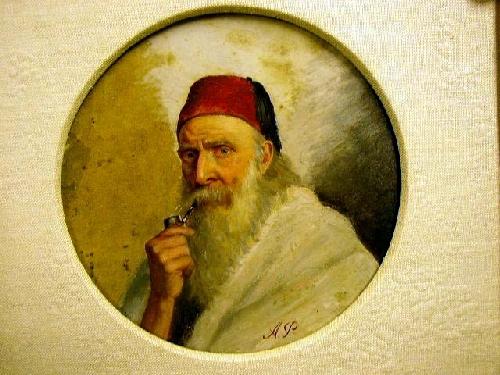 AN OIL ON CANVAS OF GENTLEMAN SMOKING; Cut out and laid down, signed A. P Purchased Florence Art Gallery, Italy, August 15th 1956 as A. Pasini