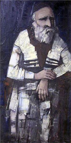 AN OIL ON CANVAS Portrait of a seated rabbi, sign