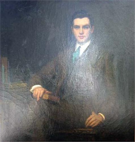 AN OIL ON CANVAS; Portrait of a young gentleman in a green tie, signed LR Albert Sterner (1863-1946), dated 1920 Provenance: Raydon Gallery, New York, NY 43"h x 39 1/2"w