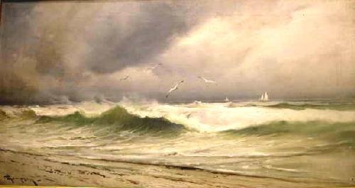 AN OIL ON CANVAS, SEASCAPE; Signed ll Thompson, 25" x 13" mounted in a giltwood frame