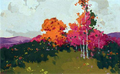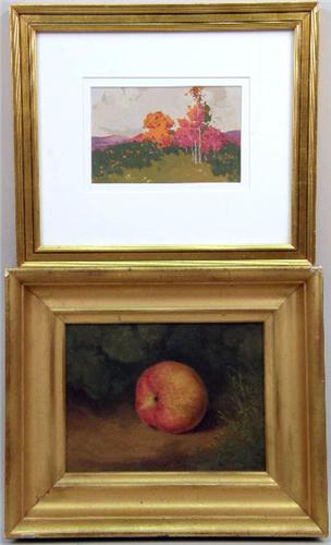 Unsigned. Together with small gouache on paper landscape, initialed and dated l.r.c. JK `26. 2 pieces. Sight size the first 7"h x 9"w, the second 4 1/2"h x 7"w