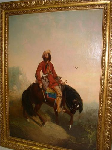 AN OIL ON CANVAS, "THE TRAPPER", attributed to Charles Deas (1818-1895), depicting frontiersman on horseback. Re-lined. 35-1/2" x 25-1/2".