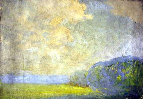 AN OIL ON CANVAS; depicting an impressionistic pastel landscape, signed l.r. I. A. Josephi (Isaac A Josephi, American, d. 1954). Together with a small oil on canvas, further affixed to cardboard, depicting a shoreline, signed l.l. E. M. Armstrong (Estelle