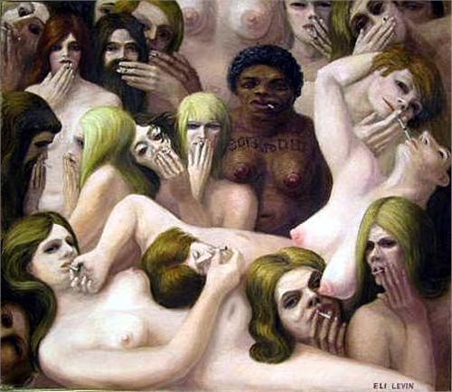 AN OIL ON CANVAS, by Jo Batiste (aka Eli Levin) (American b. 1938) depicting smoking nudes, signed, lr, 35"h x 39"w