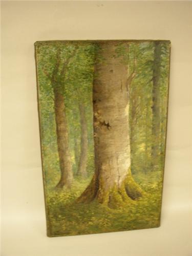 AN OIL ON CANVAS; Hudson River School depicting a forest view. Possibly reduced in size. Re-lined. Some losses and minor in-painting. 23-1/4" x 14-1/2"
