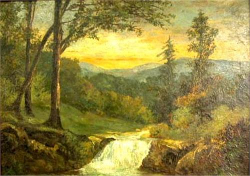 AN OIL ON CANVAS; depicting a Hudson River Valley landscape, signed lr Rondel "92", 9 1/2"h x 13"w