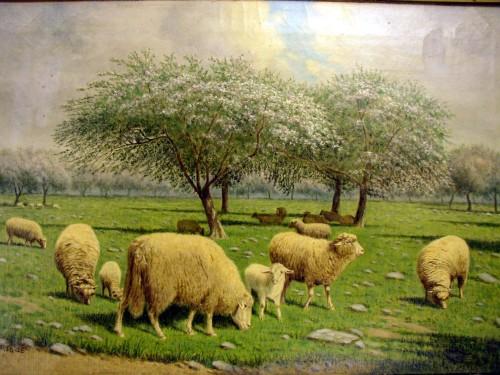 AN OIL ON CANVAS; Sheep in Prospect park, signed ll by C Loveridge