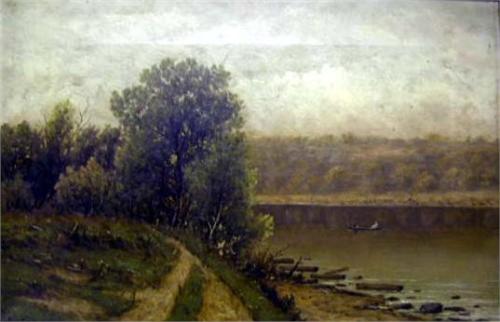 AN OIL ON CANVAS; signed ll C.W. Knapp, depicting bucolic riverscape