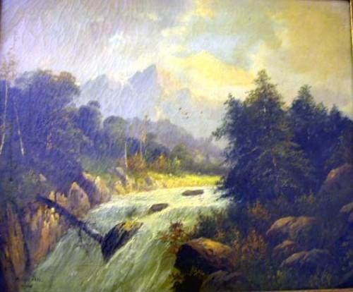 AN OIL ON CANVAS; "A Rushing Torrent" signed LL Brian Torr, 19 1/2"h x 23 1/2"w, losses