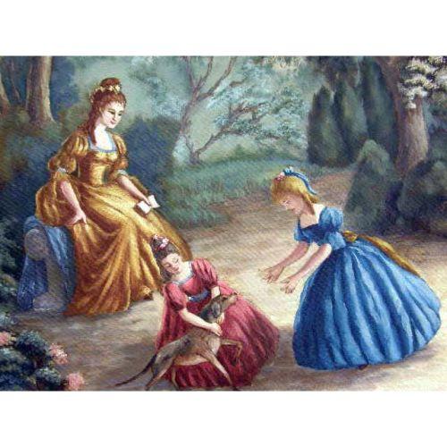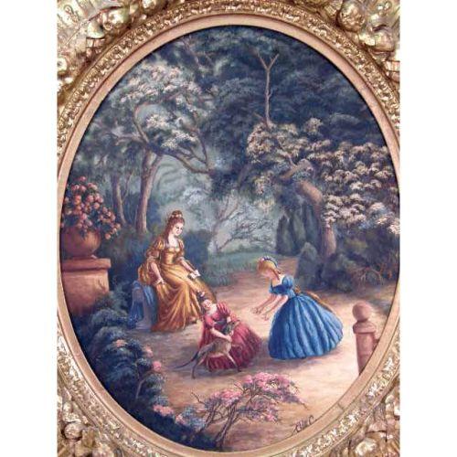 AN OIL ON CANVAS<BR><BR>Depicting girls in a garden, bears illegible signature l.r., 43"h x 38"w