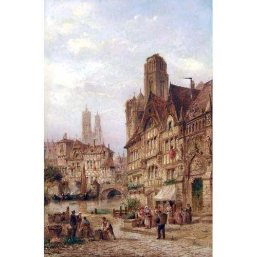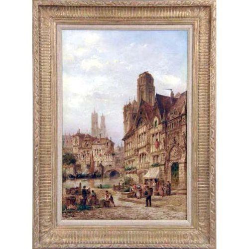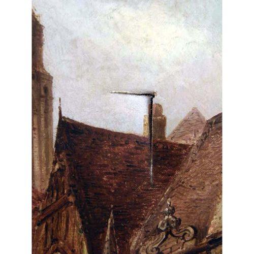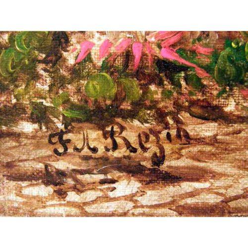 AN OIL ON CANVAS<BR><BR>Titled "Town Square," signed l.l. Felix Rezia, tear, 29"h x 20"w