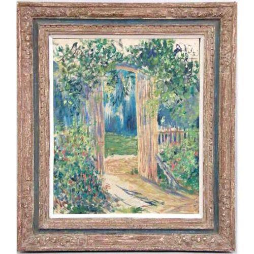 AN OIL ON CANVAS<BR><BR>Depicting a garden gate, bears signature D. Onk, 18"h x 14"w
