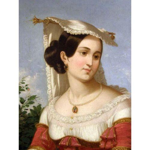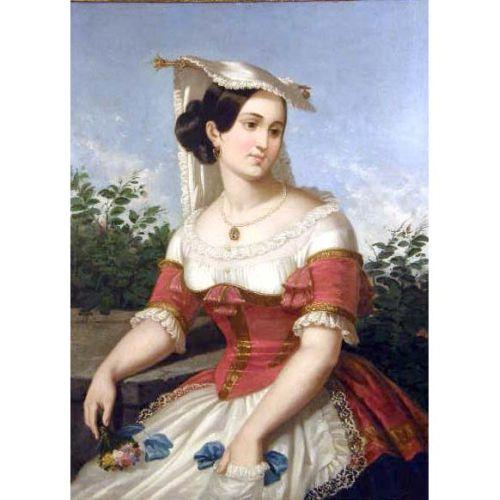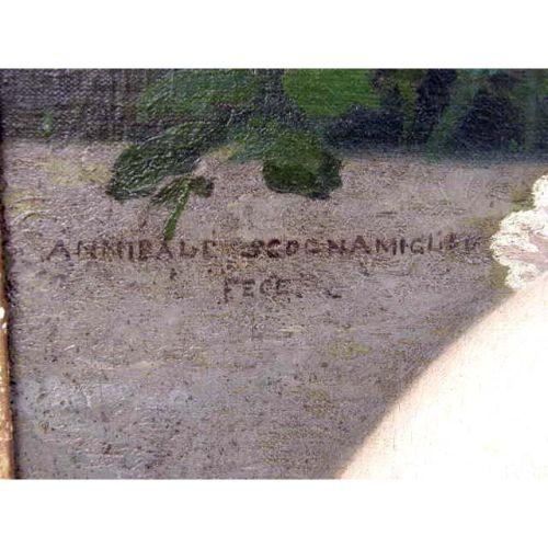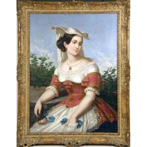 AN OIL ON CANVAS<BR><BR>Of a lady in a landscape, signed A. Scognamiglio, 41"h x 31"w