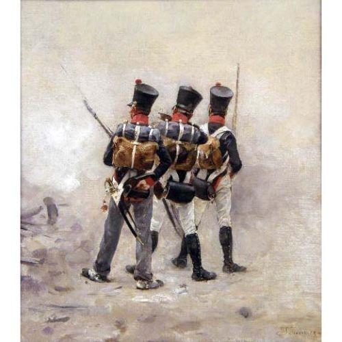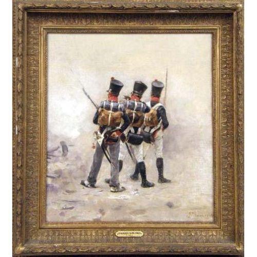 AN OIL ON CANVAS<BR><BR>Of three soldiers, signed and dated 1888 l.r., Francois Schommer, 17-1/2"h x 15-1/2"w