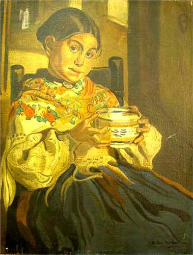 AN OIL ON CARDBOARD; depicting a Mexican peasant girl, signed l.r. Anton Eckert (?). Together with an oil on cardboard depicting the head of a Spanish girl, signed l.r. J. de Tahy, and a chalk on paper of a Mexican cantina, signed l.r. Marion Greenwood (A