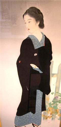 AN OIL ON SILK TITLED "GEISHA"; Signed LR 58"h x 25 3/4"w