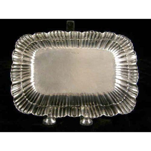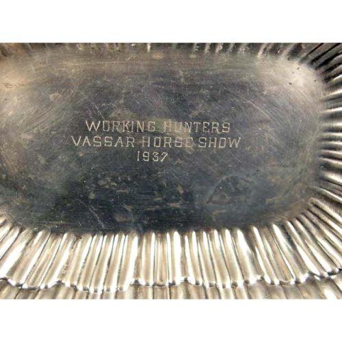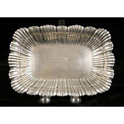 AN OLD NEWBURY CRAFTERS STERLING SILVER RECTANGULAR TRAY<BR><BR># WD141 ,with double fluted shaped border and engraved inscription "Working Hunters Vassar Horse Show 1937", 8"long, weight apx. 6 T.O.