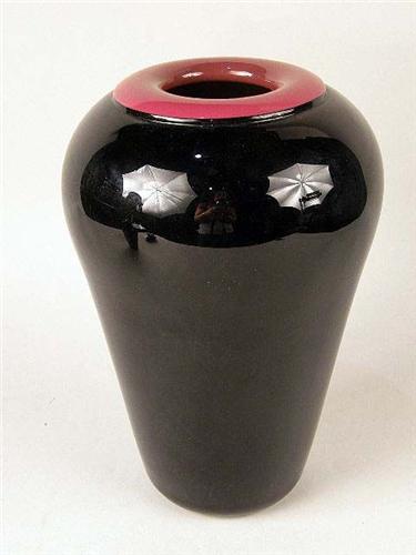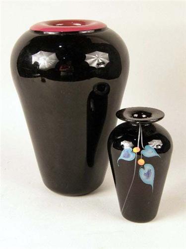 Bears signature, "Correia," numbered VXLFLUAR3845. Together with another onyx baluster-form vase, bears signature "Abelman, 1983," 10 1/2"h 2 pieces