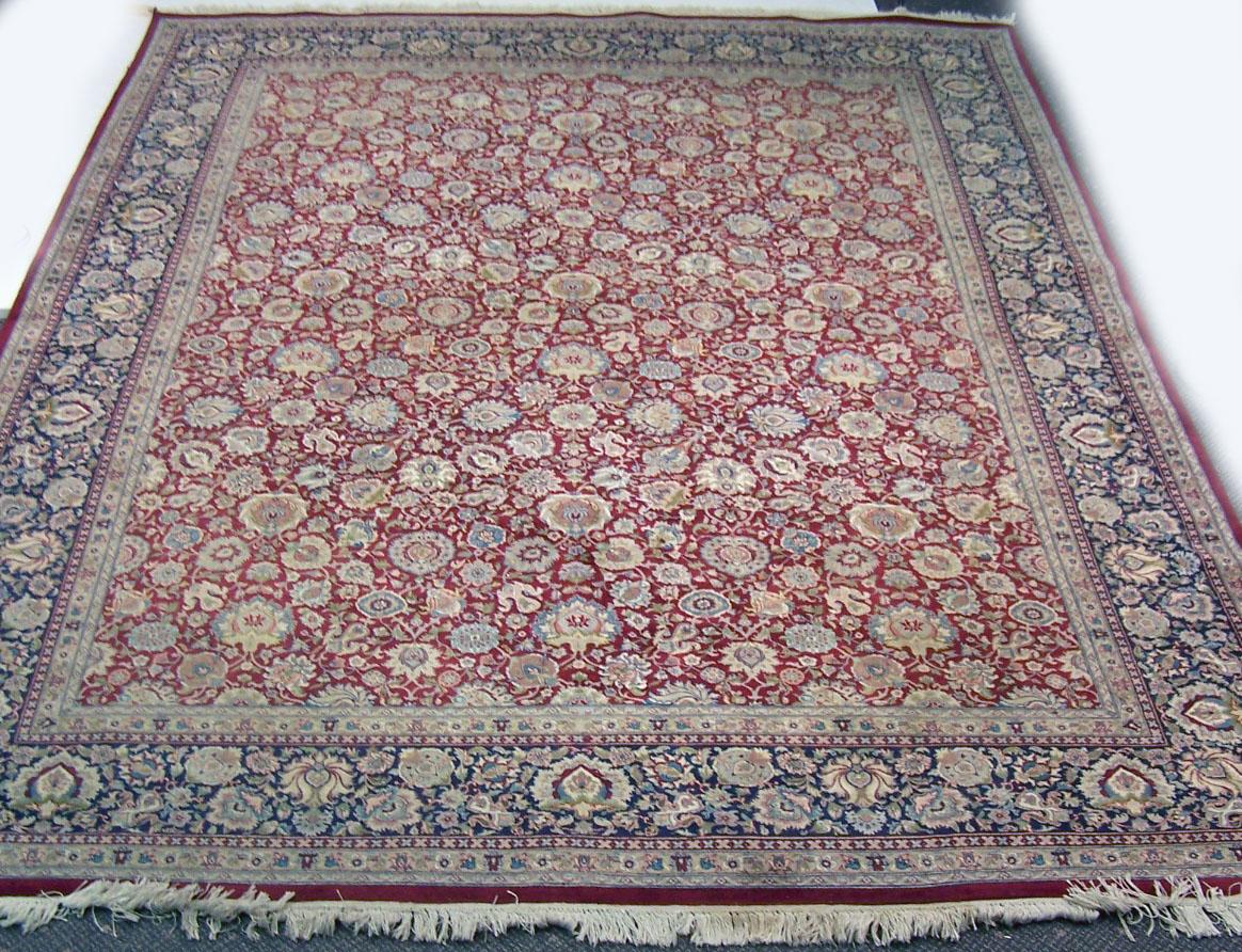 With floral decoration on a burgundy field. 13`6"l x 9`ww
