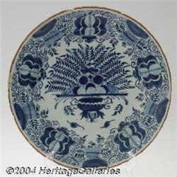 <B>AN ORIENTAL POTTERY PLATE (Unknown) </B></I><BR>Unknown, c.1900<BR><BR>The blue and white floral design fully decorates the plate, unknown mark under glaze<BR>10in. across <BR><BR><B>Important notice:</B> Heritage usually auctions material at the rate of 200-250 lots per hour. On some occasions eBay Live bid software or the Internet may not be able to keep up with the pace of the auction. We recommend placing a realistic absentee bid now as insurance to avoid disappointment. Occasionally the auctioneer may eliminate or reject an eBay Live bid, and the auctioneer may also reopen a lot after the close of the eBay live bidding (usually because we missed an audience bid), and may reject your bid even if it shows you as the winning bidder. By bidding via eBay Live, you agree that Heritage may award the lot to another bidder at its sole discretion under the circumstances described above or any other reasonable circumstances. Since eBay bids are not shown to us until we open the lot on the floor, we treat those bids just like floor bids. In most cases the floor responds before the eBay bid is presented to us, due to Internet lag time, so for consistency we have made it a policy that floor bids are always considered first over tie eBay live bids. Also please note that all Heritage lots purchased through eBay Live carry a 24.5% Buyer's Premium. Please make sure you read the Terms and Conditions before you bid.