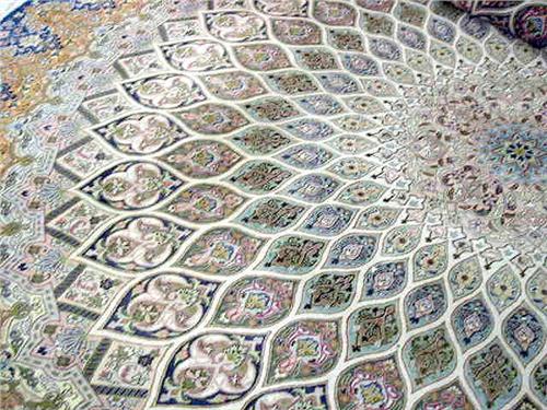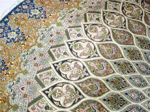 Worked primarily in tones of blue, pinks, and ivory, some wear, fading to colors, Approximately 10`dia.