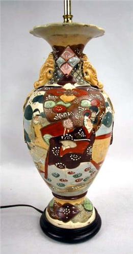 AN ORIENTAL STYLE TABLE LAMP; Geisha girl design, 27"h