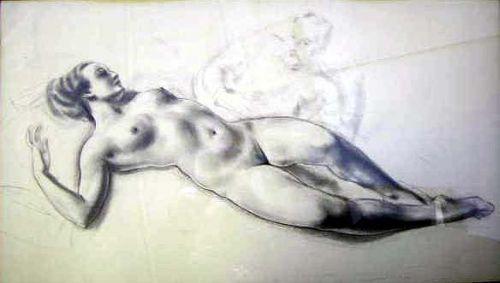 AN ORIGINAL PENCIL DRAWING; Titled "The Artist and his model" By Umberto Romano