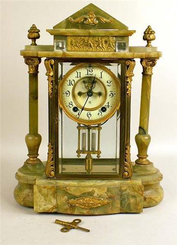 With round ivory dial with black Arabic Numbers, losses, 15"h x 11"w x 5 1/2"d