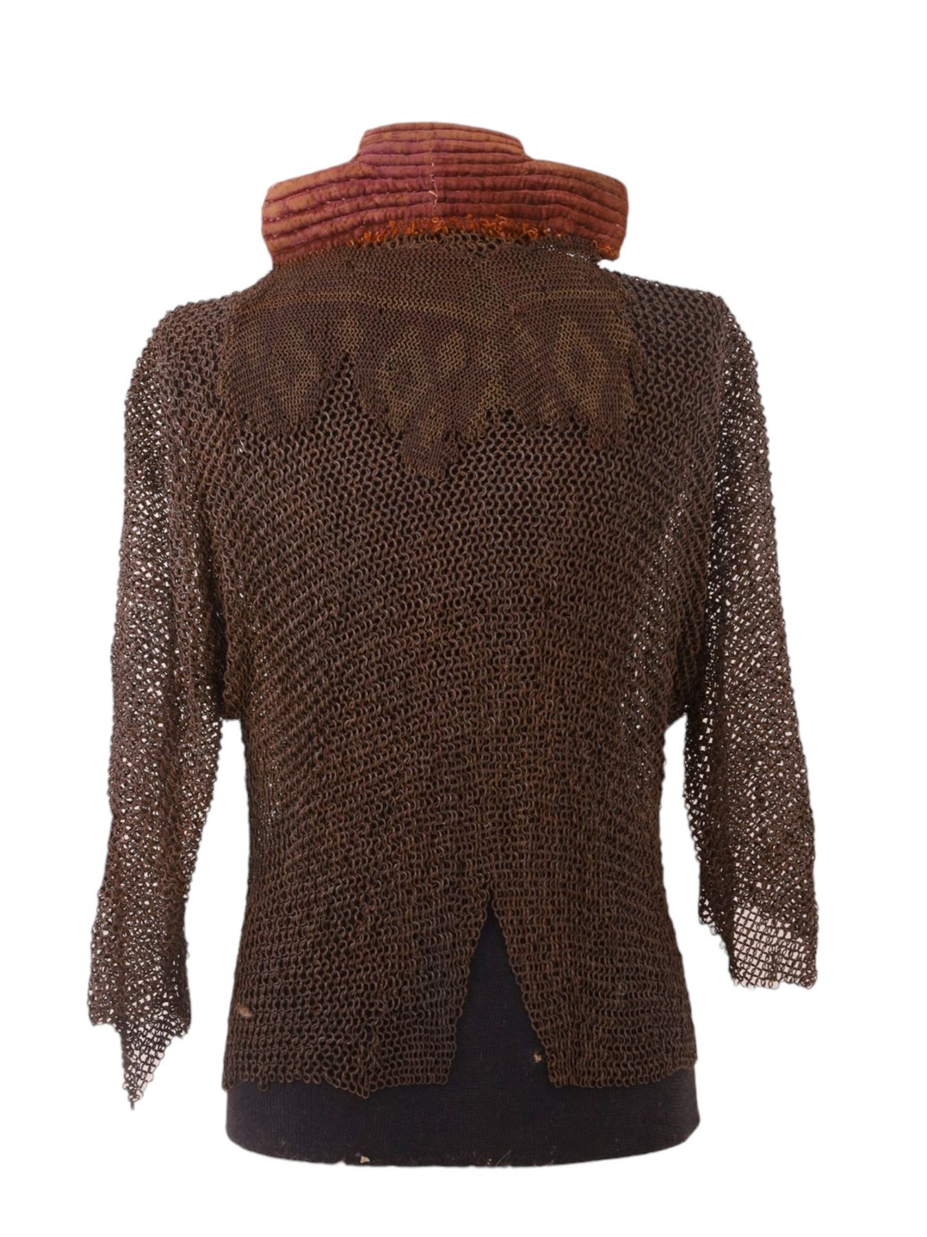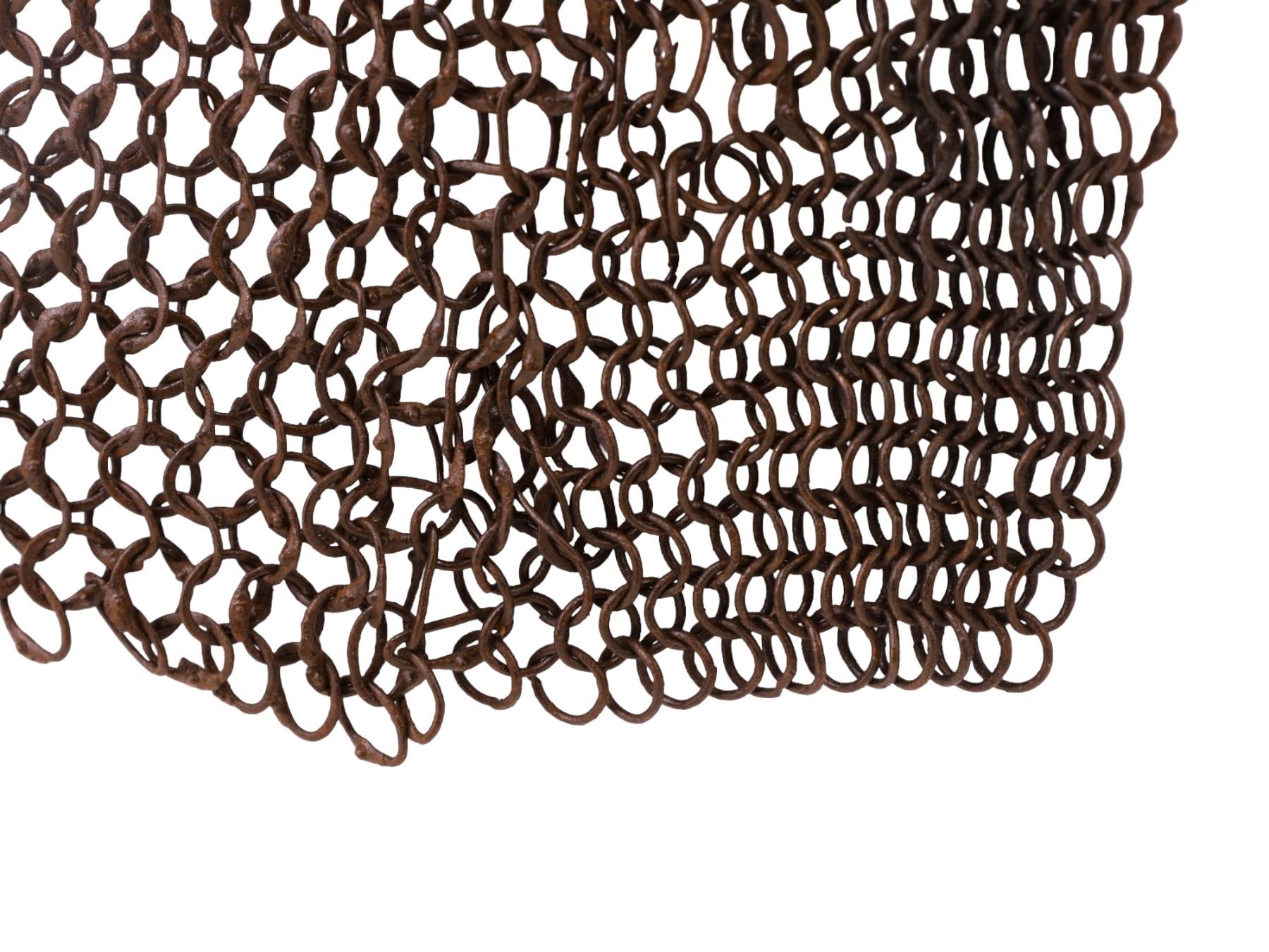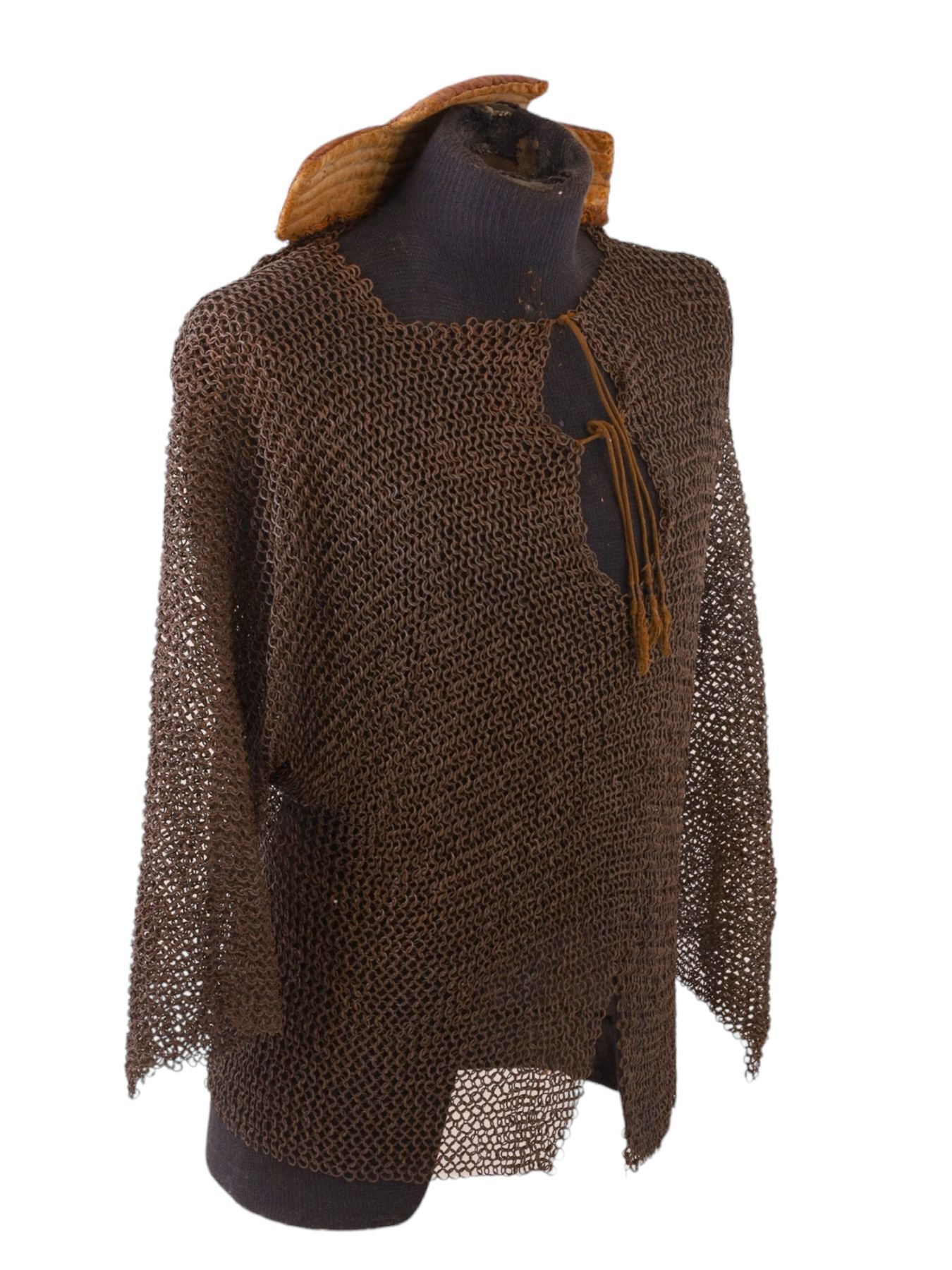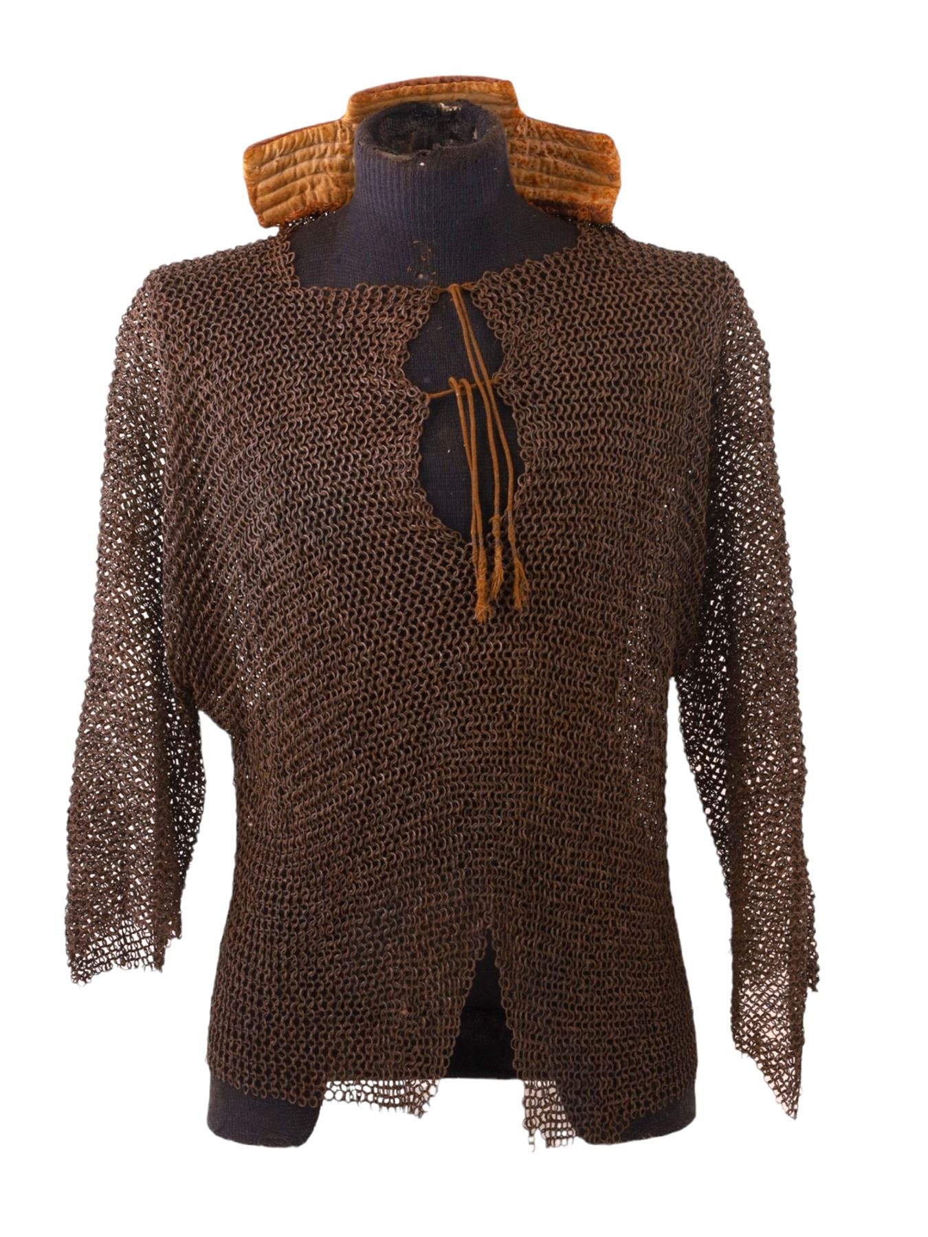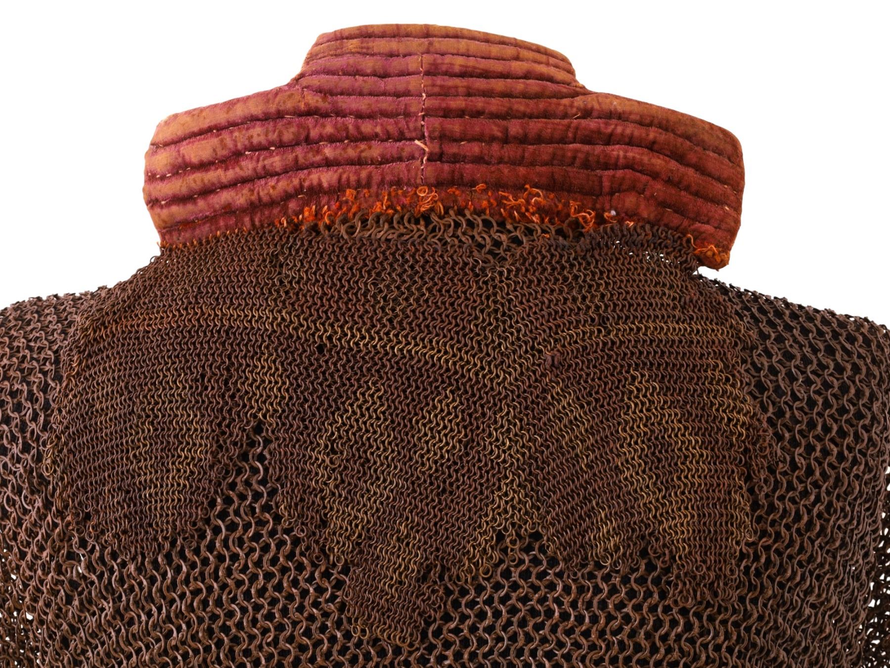 A remarkably preserved Ottoman chainmail shirt from the 17th century. The chain links have a light patina and still articulate well. Leather fasteners and cloth padding are present around the neck but could be later additions.