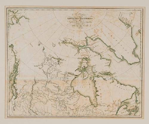 AN OUTLINE TO SHEW THE CONNECTED DISCOVERIES of Captain Ross, Parry & Franklin in the Years 1818, 19, 20, 21, 22 &23. Light outlining in green, foxed and laid down on board, matted and framed.