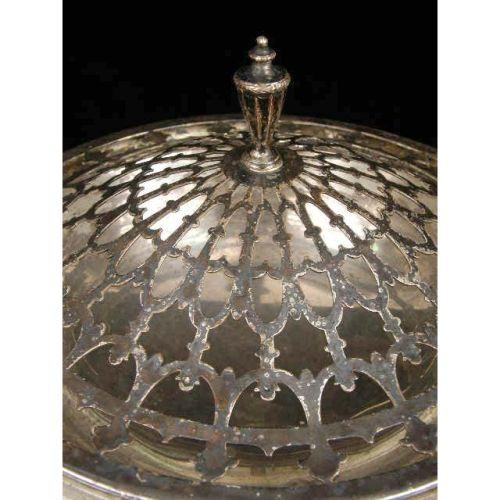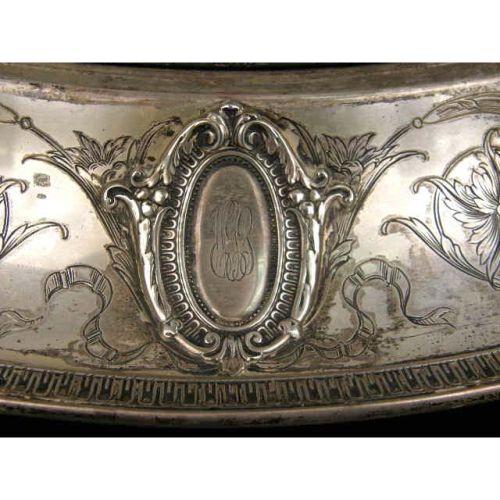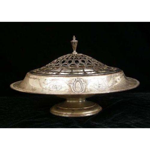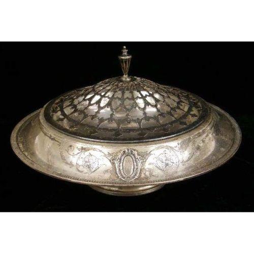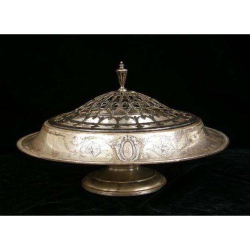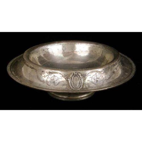 AN RW WALLACE STERLING SILVER CIRCULAR FOOTED FLORAL CENTERPIECE BOWL<BR><BR>Monogrammed with silver plated mesh insert, 13-1/2"diameter, weight apx. 32 T.O.