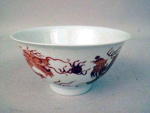 Chinese, the interior and underside marked with characters. 4 3/4"dia.