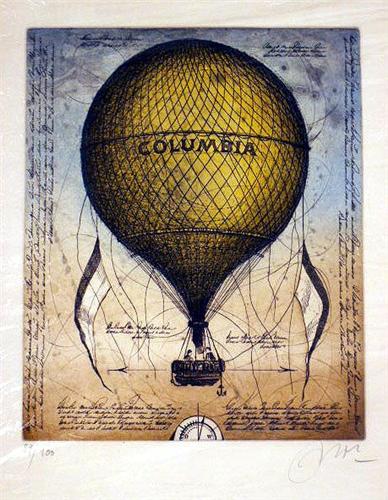 Titled "Columbia", depicting a yellow balloon, 89/200, signed in pencil lr Nolte. 17"h x 12 1/2"w.