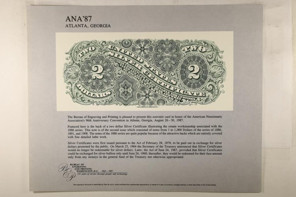 ENGRAVING OF THE REVERSE OF A 1886 SERIES $2, PRINTED BY THE BUREAU OF ENGRAVING AND PRINTING