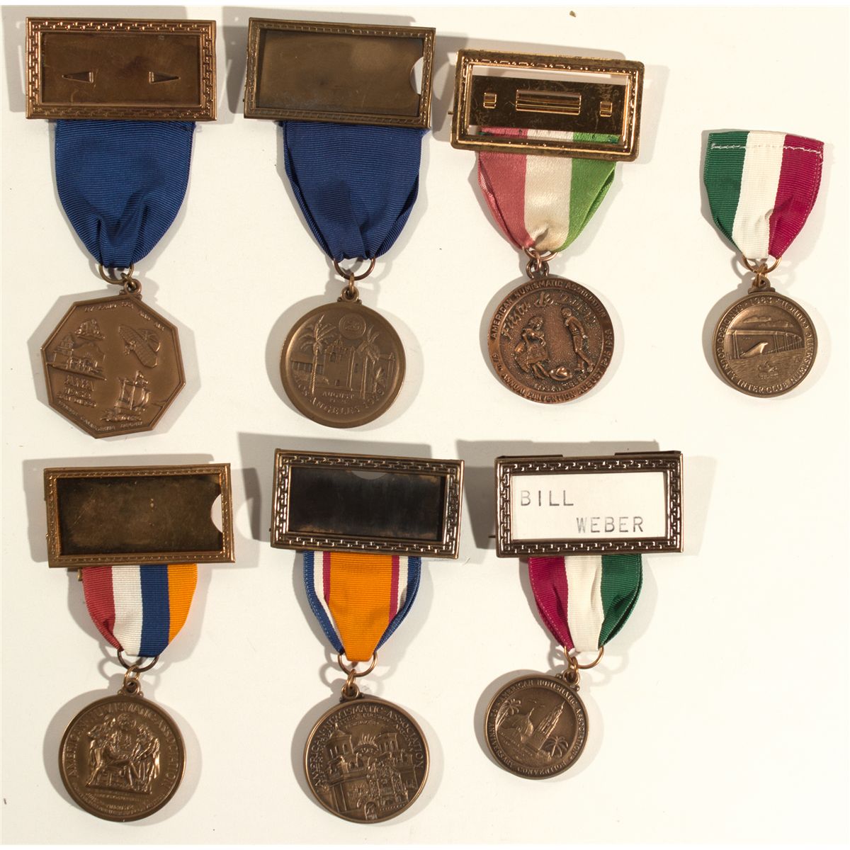 Lot of 7 ANA convention badges. - Weber Collection