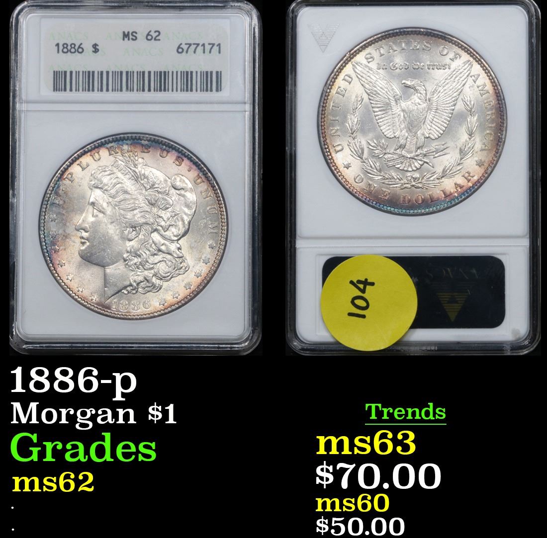 ANACS 1886-p Morgan Dollar $1 Graded Select Unc By ANACS.