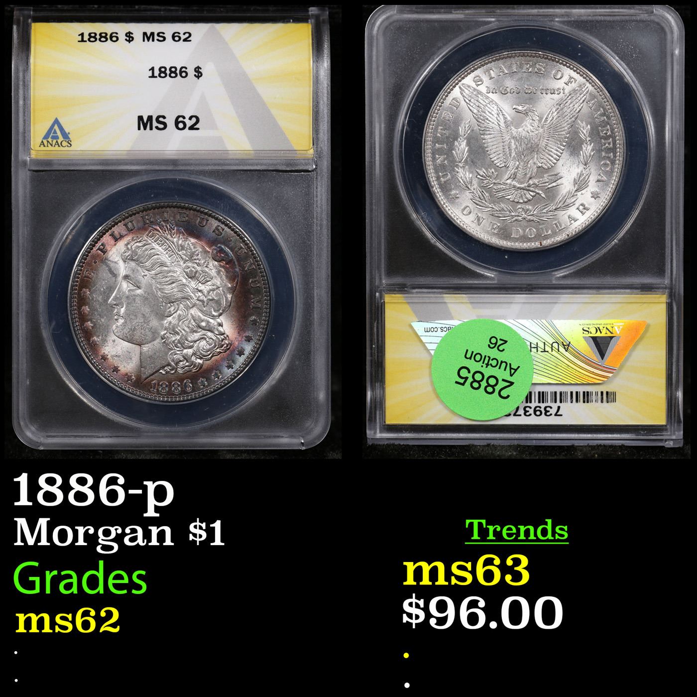 ANACS 1886-p Morgan Dollar $1 Graded ms62 By ANACS.