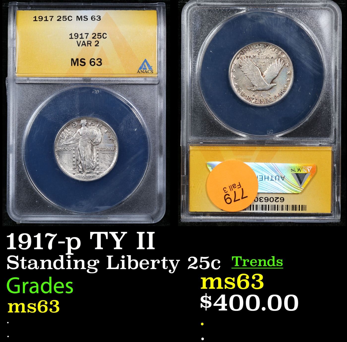 ANACS 1917-p TY II Standing Liberty Quarter 25c Graded ms63 By ANACS.