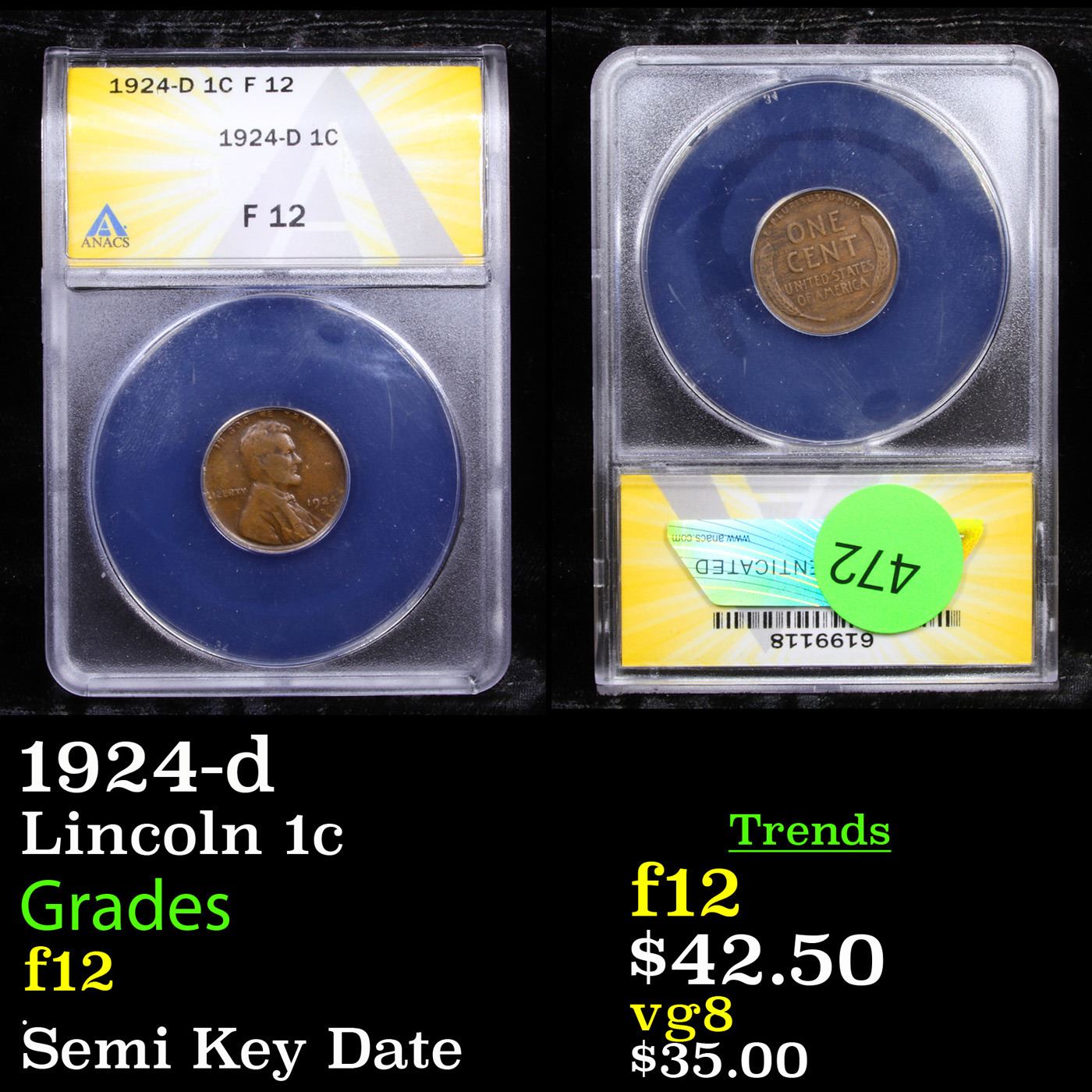 ANACS 1924-d Lincoln Cent 1c Graded f12 By ANACS.