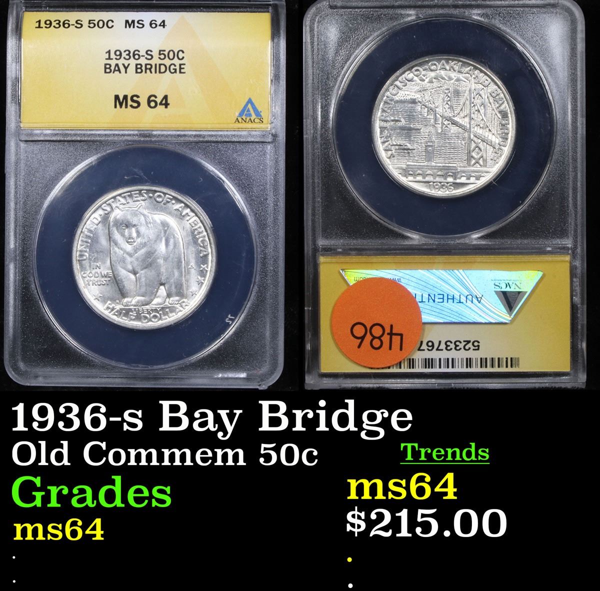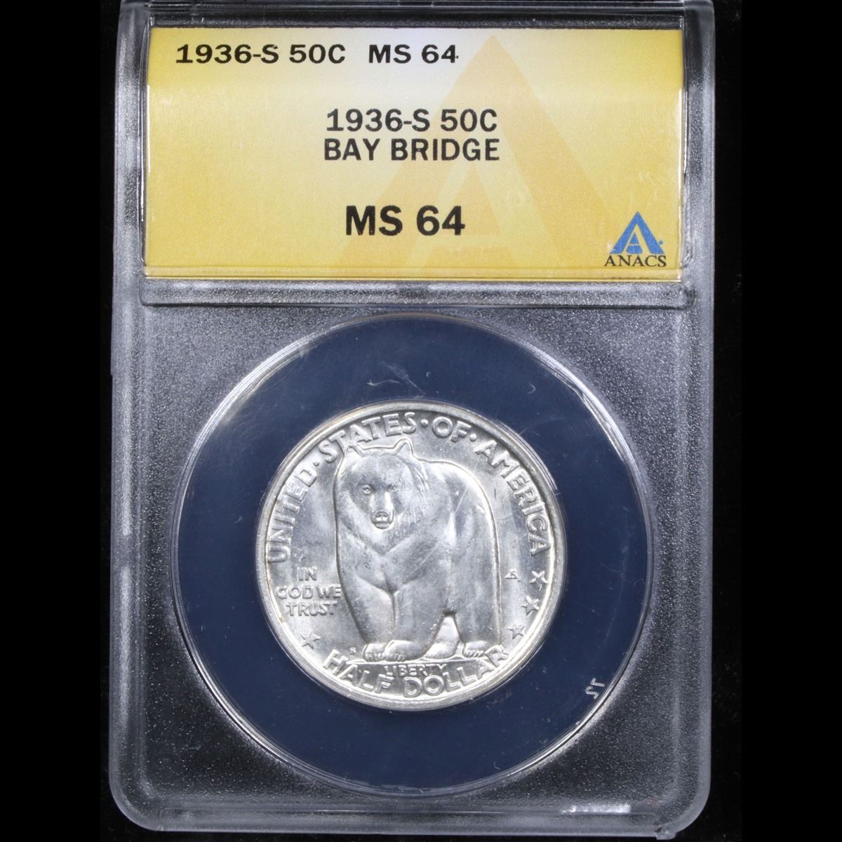 ANACS 1936-s Bay Bridge Old Commem Half Dollar 50c Graded ms64 By ANACS.