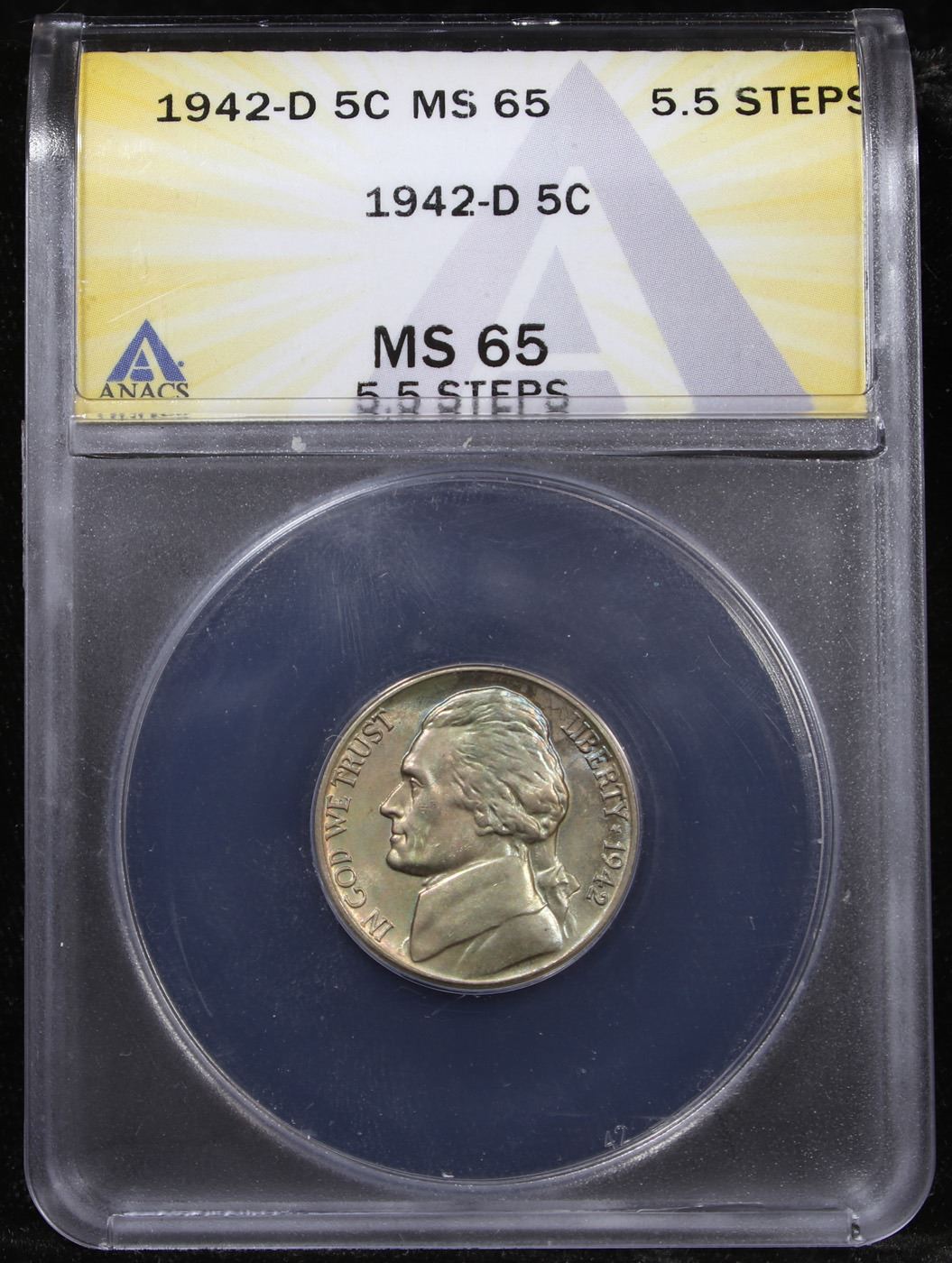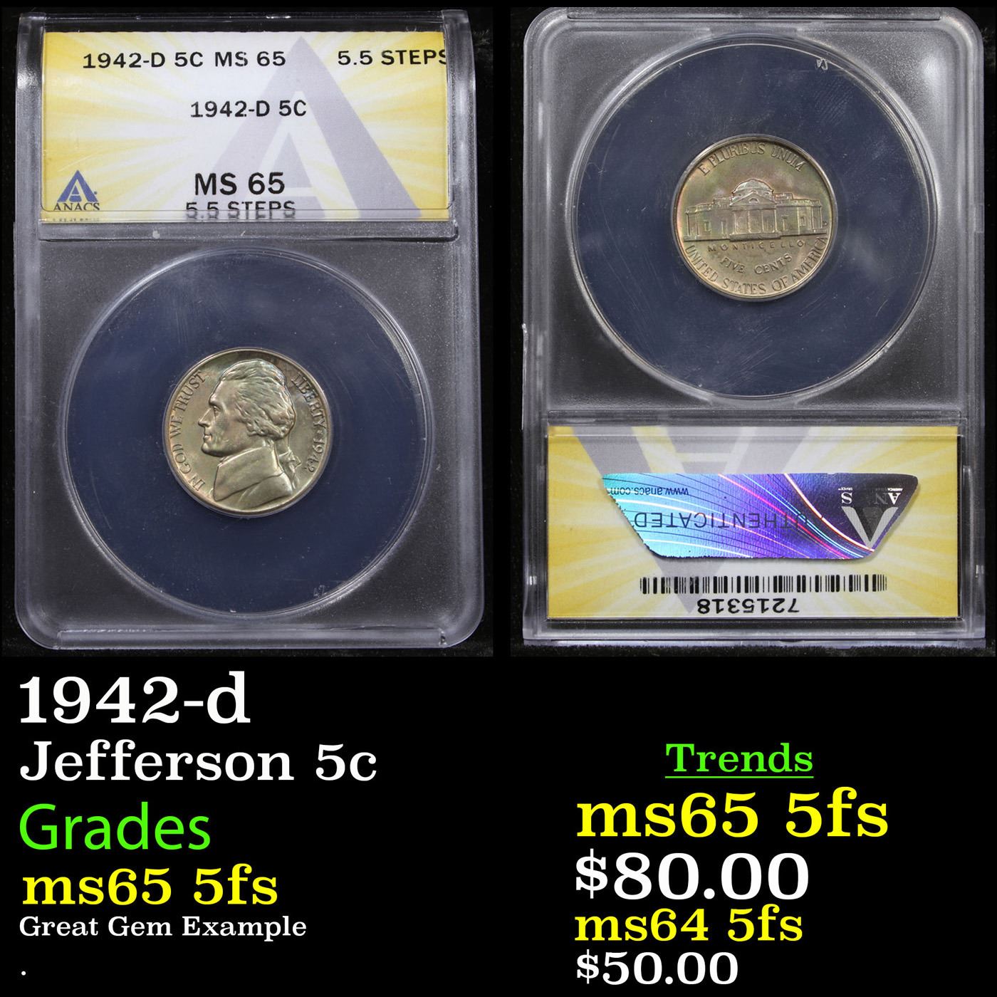 ANACS 1942-d Jefferson Nickel 5c Graded ms65 5fs By ANACS.