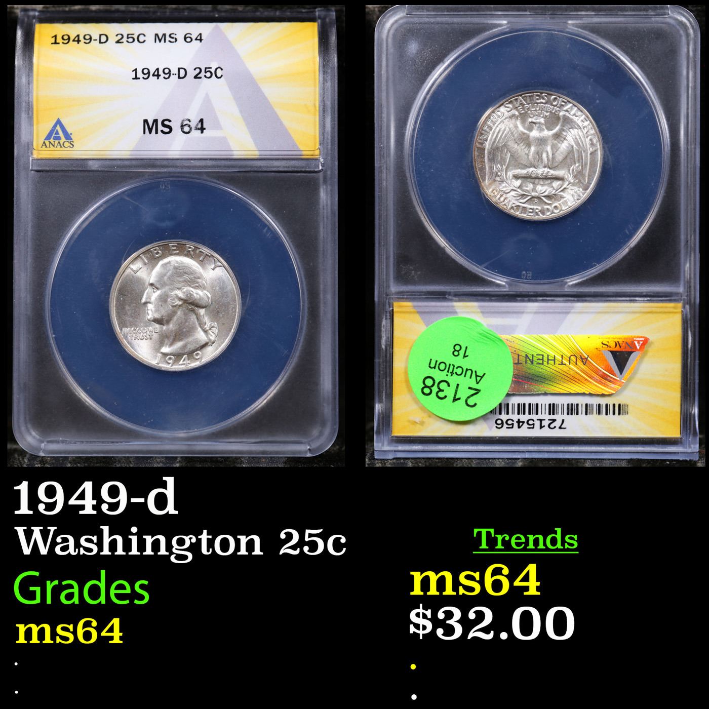 ANACS 1949-d Washington Quarter 25c Graded ms64 By ANACS.