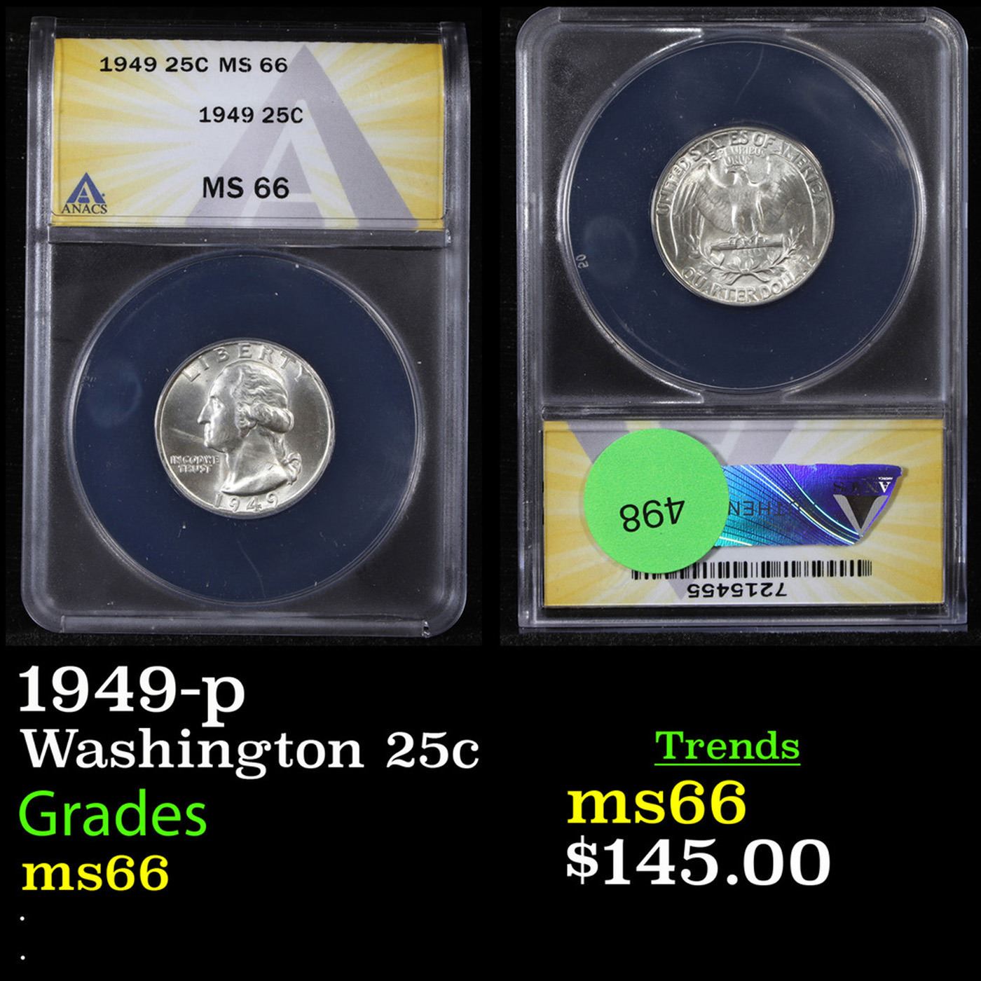 ANACS 1949-p Washington Quarter 25c Graded ms66 By ANACS.