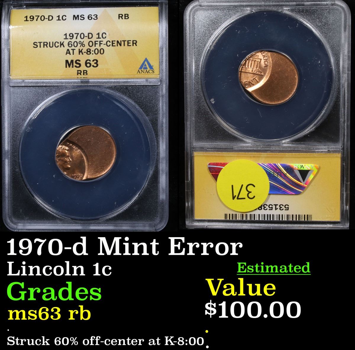 ANACS 1970-d Mint Error Lincoln Cent 1c Graded ms63 rb By ANACS.