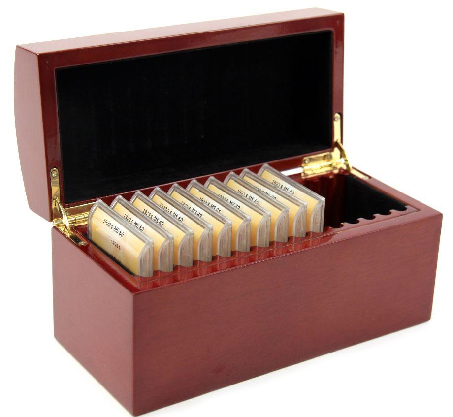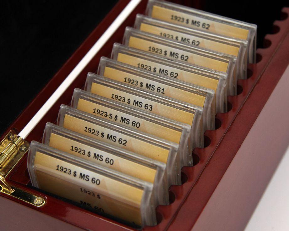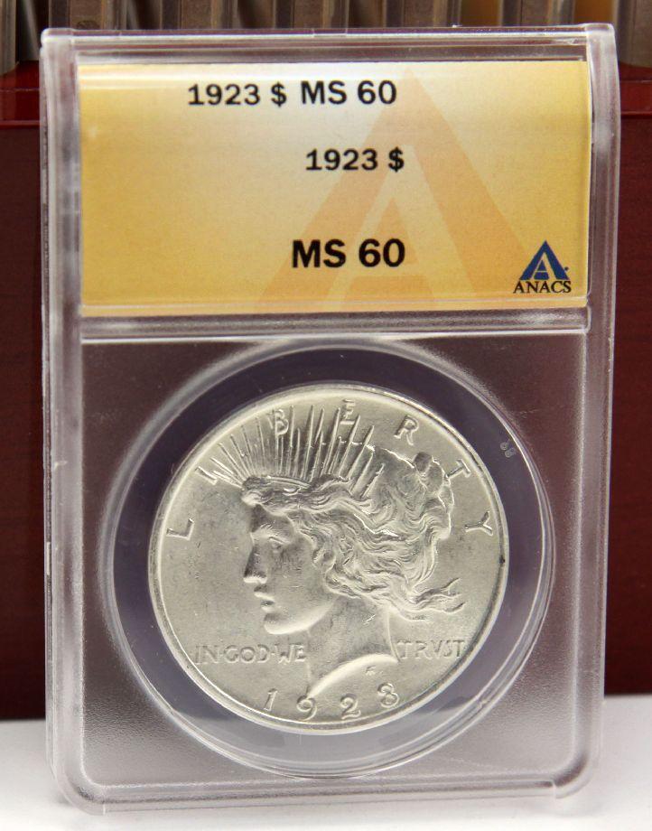 Grouping of 10 encapsulated Peace dollars from 1923. Grades and quantity per grade as follows:(3) MS60,a MS61, (5) MS62 and a MS63.